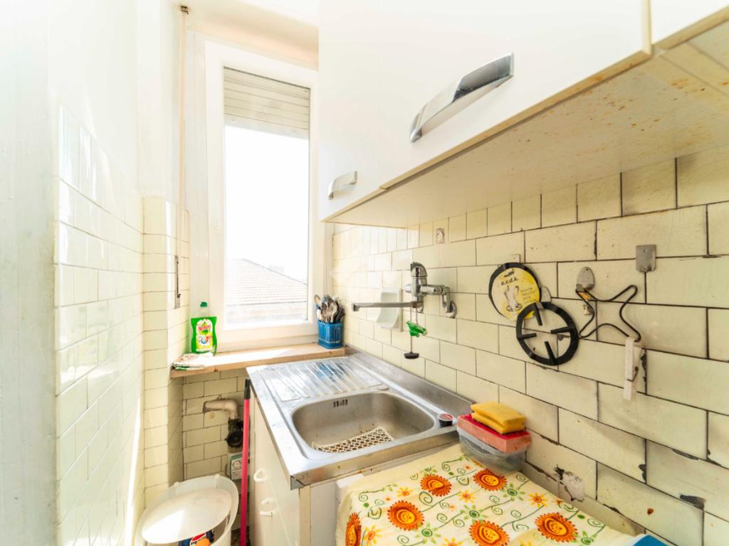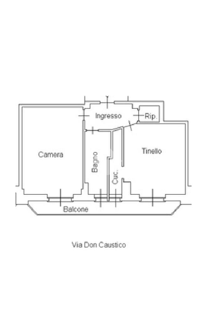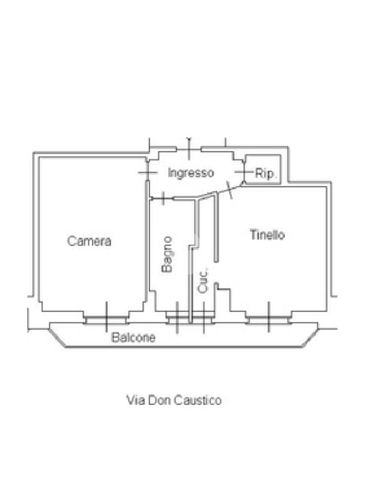 La soluzione è proposta è così composta: Ingresso su disimpegno, tinello con cucinino, ripostiglio, camera matrimoniale e bagno con finestra.