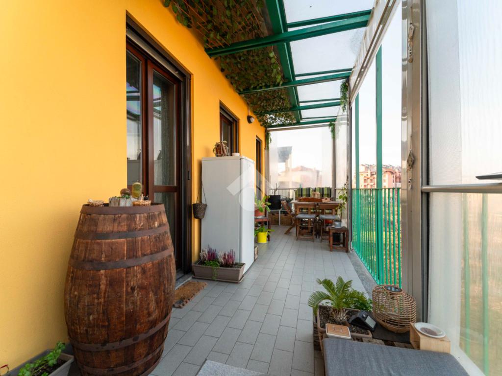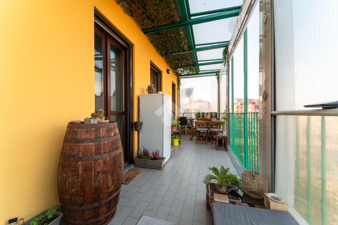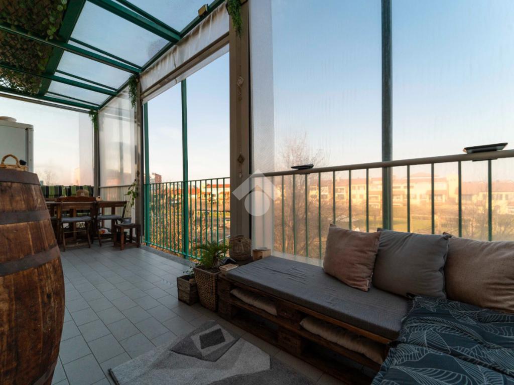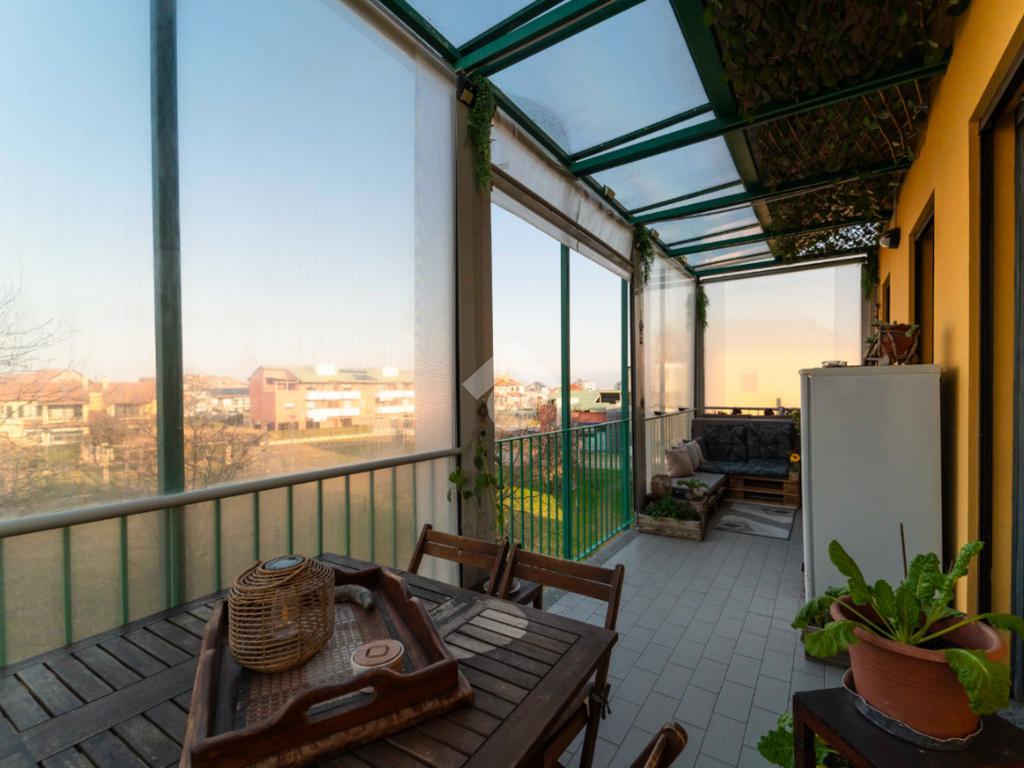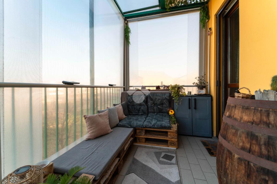 Il vero valore aggiunto è l’ampio terrazzo, accessibile dalla zona giorno, da un bagno e dalla camera da letto: uno spazio all’aperto con vista sul parco, ideale per colazioni, cene o semplici attimi di relax immersi nel verde.