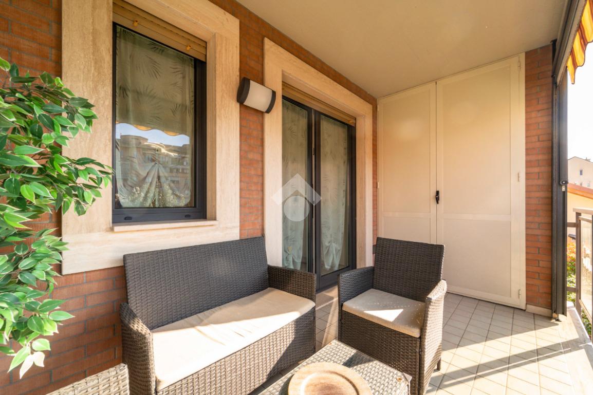E poi ci sono loro, i due terrazzini: luoghi sospesi tra interno ed esterno, dove il tempo sembra rallentare, perfetti per una colazione del mattino, per una cena sotto il cielo d’estate o per un momento di quiete da dedicare a sé stessi. Spazi intimi, preziosi, da vivere in ogni stagione.
